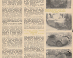 Sami budujemy samochody♦ W końcu ubiegłego roku odbył się w Warszawie konkurs samochodzików własnej konstrukcji, organizowany przez Polski Związek Motorowy. Domorośli konstruktorzy zaprezentowali szereg całkiem udanych rozwiązań technicznych, wykonanych przy jak najmniejszym nakładzie kosztów (1000 do 3500 zł). Samochodziki przeszły przegląd techniczny, próbę szosową na 50 km, próbę terenową i próbę zrywu. Wszystkie wozy ukończyły te próby pomyślnie i ich konstruktorzy zostali nagrodzeni premiami pieniężnymi. Przy przyznawaniu nagród kierowano się przydatnością użytkową i sportową wozu, poprawnością konstrukcji, starannością wykonania i oryginalnością pomysłu. Należy podkreślić, że wszystkie samochody budowano w niezwykle prymitywnych, domowych warunkach i ich konstruktorzy dysponowali jedynie podstawowymi narzędziami.